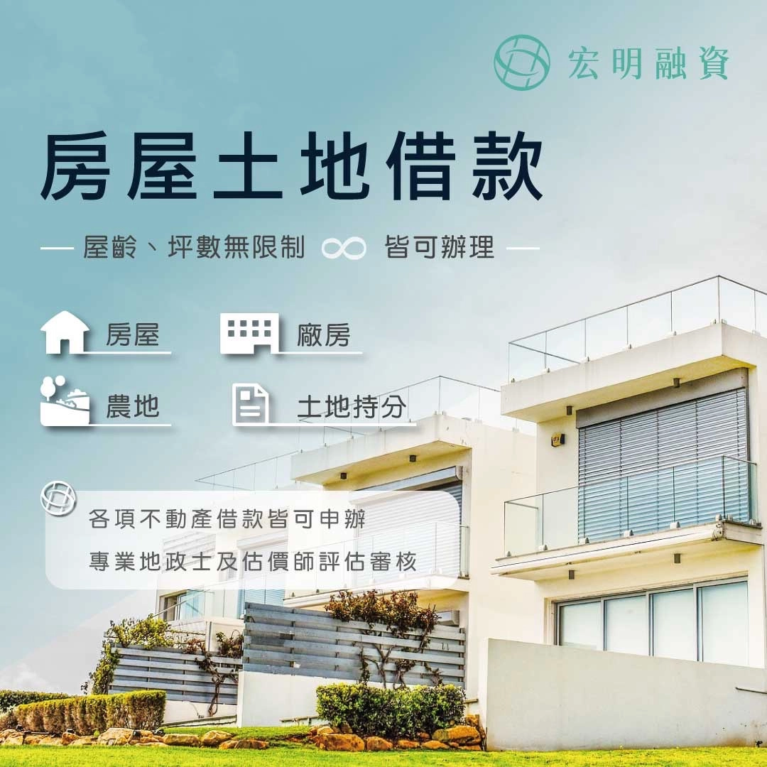 房屋土地一順位二順位借款,不限職業無收入證明皆可申辦。
